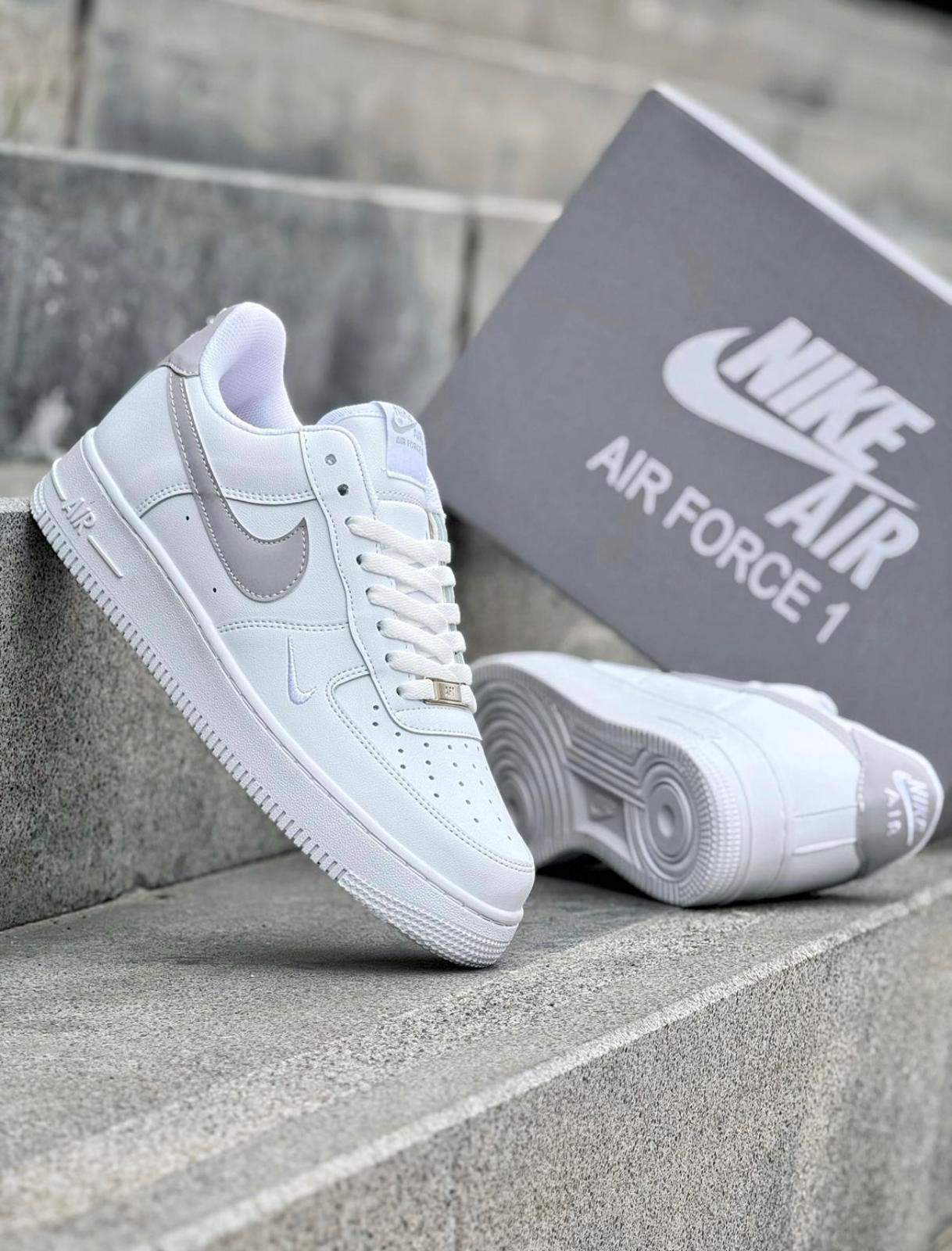 Мъжки спортни обувки – Черна кожа с текстура-White with Grey Logo
